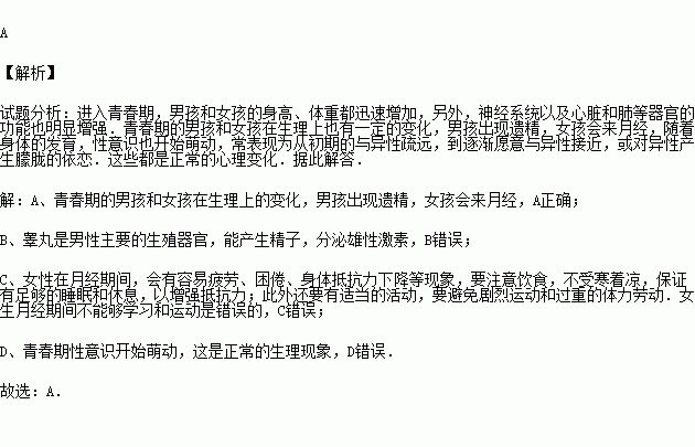 A.男生会出现遗精,女生会来月经