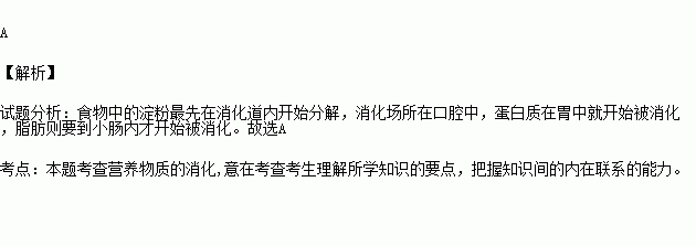 营养物质:淀粉、蛋白质、脂肪分别在人体的哪个器官中初步被消化:( )