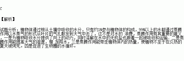 C.呼吸作用和蒸腾作用 D.光合作用、呼吸作用和蒸腾作用