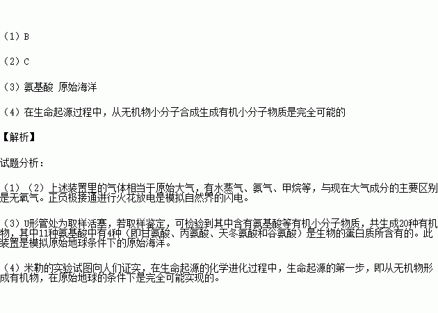 ÔÚ̽Ë÷ÉúÃüÆðÔ´µÄÑо¿ÖУ¬ÃÀ¹úѧÕßÃ×ÀÕÉè¼ÆÁËÈçͼËùʾµÄʵÑé×°Öã¬Çë»Ø´ðÏÂÁÐÎÊÌ⣺