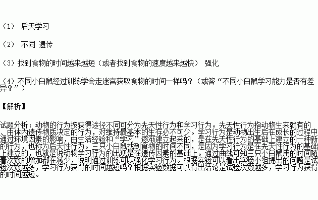 (1)从行为获得途径上看,小白鼠通过训练走迷宫获取食物的行为,属于 行为。