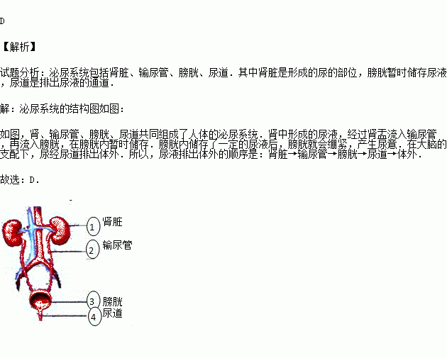 在肾里形成的尿,经下列的那个途径排出体外( )
