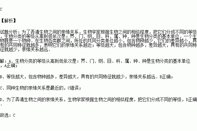 C.同种生物的亲缘关系是最远的