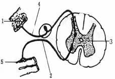 (3)、若图中5表示该反射活动的效应器,则神经冲动的传导途径是(1)________ _ →(4)________ _ →(3)________ →(2)________ _ →(5)效应器