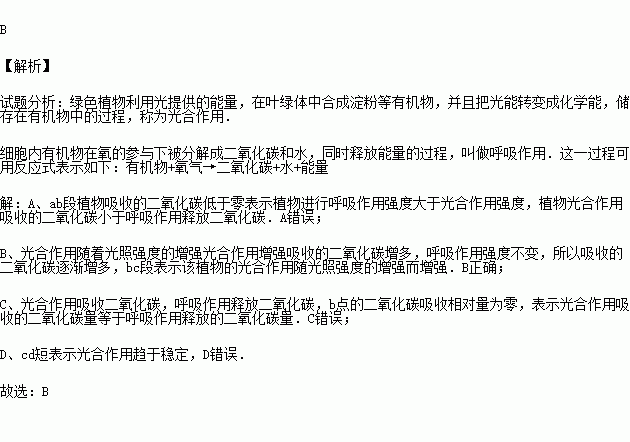 图中表示一段时间内某植物叶片吸收二氧化碳与光照强度关系示意图.以下分析正确的是( )