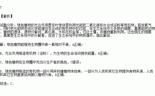 关于绿色植物在生物圈中作用的叙述,不正确的是( )