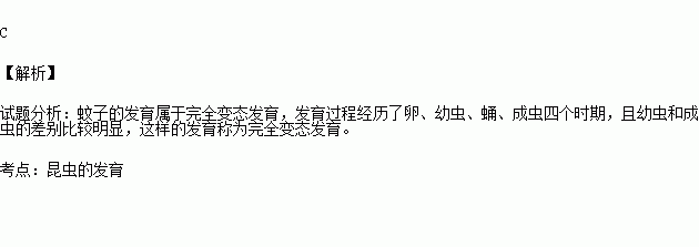 C、受精卵→幼虫→蛹→成虫四个时期 D、卵→幼虫→成虫三个时期