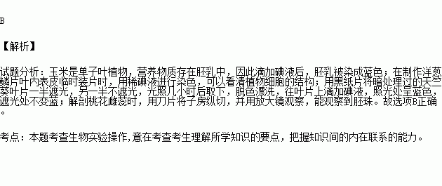 A | ÔÚÓñÃ×ÖÖ×ÓÆÊÃæÉϵÎÒ»µÎµâÒº | Ⱦ³ÉÀ¶É«µÄÊÇ×ÓÒ¶ |