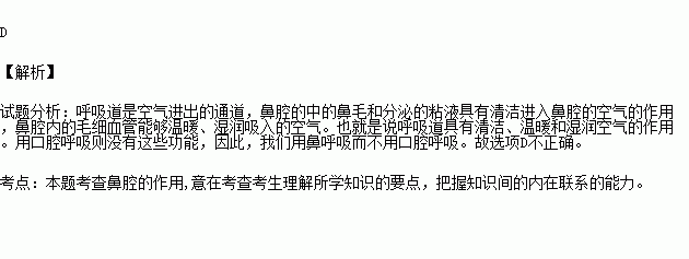下列关于用鼻呼吸而不用口腔呼吸的原因的叙述中,不正确的是( )