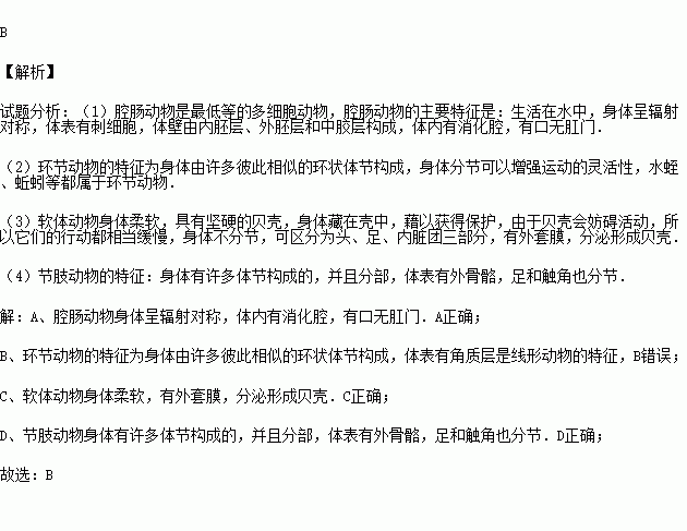 A.腔肠动物﹣有口无肛门,身体呈辐射对称