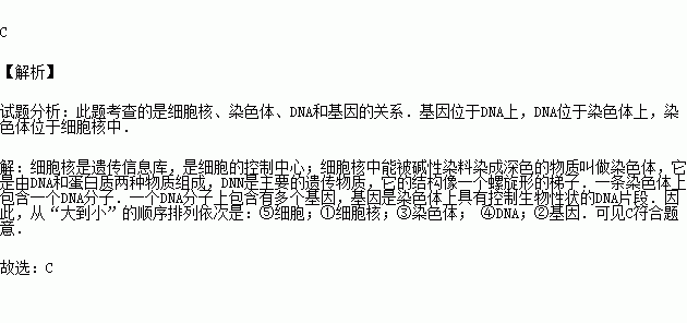 ①细胞核 ②基因 ③染色体 ④DNA ⑤细胞.