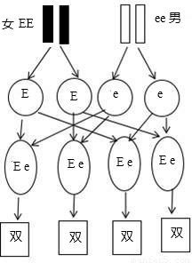 解答:解:显性基因控制显性性状,隐性基因控制隐性性状,当控制某个性状的基因一个是显性,一个是隐性时,只表现出显性基因控制的性状.单眼皮是由隐性基因e控制的,男单眼皮其基因组成是ee;双眼皮是由显性基因E控制的,女双眼皮基因组成是EE或Ee.控制眼皮单双的基因在亲子代间的传递如图: