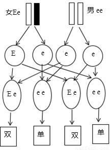 人双眼皮是由显性基因E控制的,单眼皮是由隐性基因e控制的,一对夫妇男单眼皮,女双眼皮,他们的第一个孩子是单眼皮,第二个孩子是双眼皮的基因组成为( )