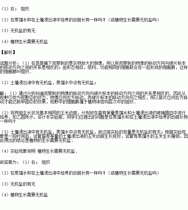 £¨2£©½«Á½×éÉú³¤×´¿ö»ù±¾ÏàͬµÄÓñÃ×Ó×Ã磬·Ö±ð·ÅÔÚÊ¢ÓеÈÁ¿ÕôÁóË®ºÍÍÁÈÀ½þ³öÒºµÄ²£Á§Æ÷ÃóÖнøÐÐÅàÑø£¬ÈçÒÒͼËùʾ£¬Éè¼Æ±¾ÊµÑéǰ£¬Í¬Ñ§ÃÇÓ¦Ìá³öµÄÎÊÌâÊÇ £®