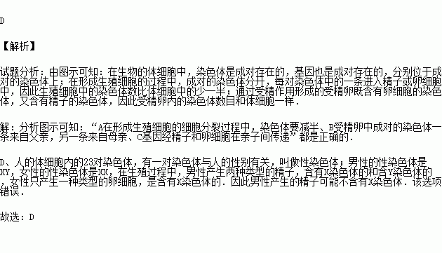 D.人体所有的细胞里都含有X染色体