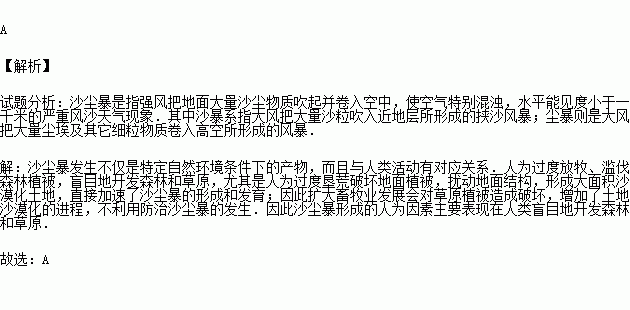近年来,沙尘暴仍频繁在我国北方发生,严重干扰和危害了人们正常的生活.沙尘暴形成的人为因素主要表现在( )