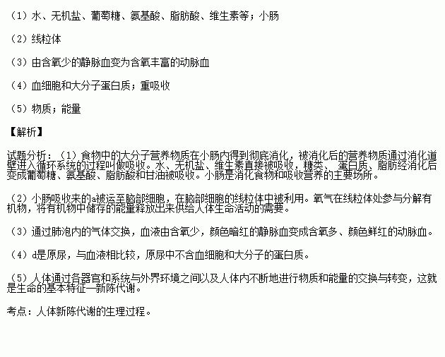 £¨1£©ÈôaΪ´ÓÏû»¯ÏµÍ³½øÈëѪҺµÄÎïÖÊ£¬ÔòÆä³É·ÖÓ¦°üÀ¨ £¨ÖÁÉÙ´ð³öÆäÖеÄ3ÖÖ£©£»Ïû»¯ÏµÍ³ÎüÊÕÕâЩ³É·ÖµÄÖ÷Òª²¿Î»ÊÇ ¡£