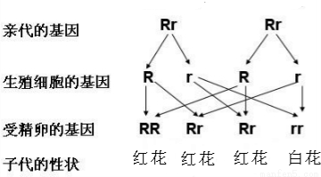 显性基因R控制豌豆开红花,隐性基因r控制豌豆开白花。一株基因组成为Rr的豌豆植株,自花受粉以后所结的种子播种后所长出的植株开花的情况是( )
