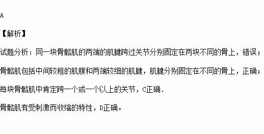 B.两端的肌腱分别固定在不同的骨上