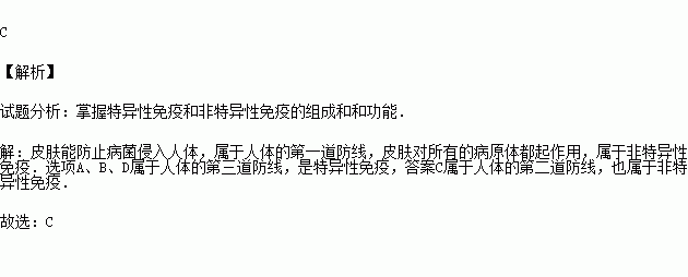 (2005•菏泽)皮肤能防止病菌侵入人体,与这种免疫属于同种类型的是( )