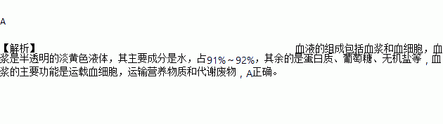 作为血液的液态部分,下列物质在血浆中不存在的是