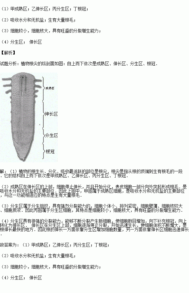 (4)根的伸长一方面依靠 细胞分裂增加细胞数量,另一方面依靠 细胞迅速伸长.
