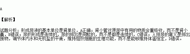 健康人每天形成的原尿约有180L,而每天排出的尿却只有1.5L.下面关于尿的形成和排出正确的是( )
