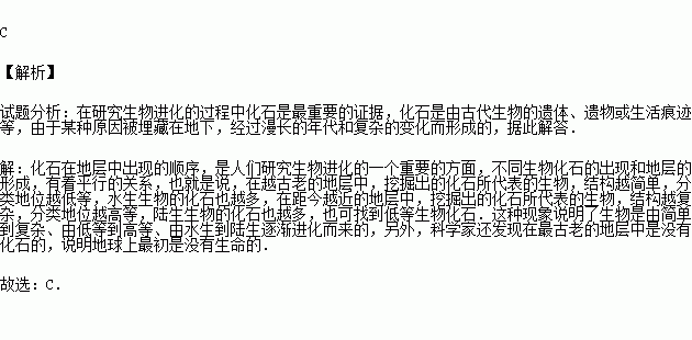 在没有被破坏的地层中,下列有关化石分布情况的描述中,不正确的是( )