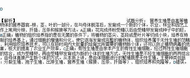 图中有关植物生殖方式的叙述中,不正确的是( )