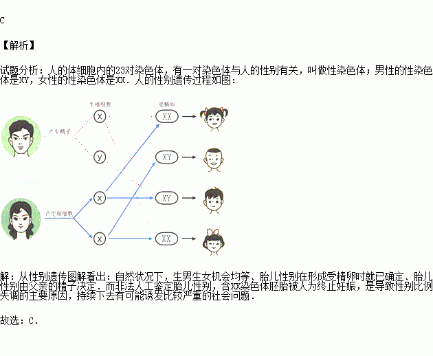 据报道,近年中国新生儿的男女性别比例是115:100,持续下去有可能诱发比较严重的社会问题.出现这种现象最可能的原因是( )