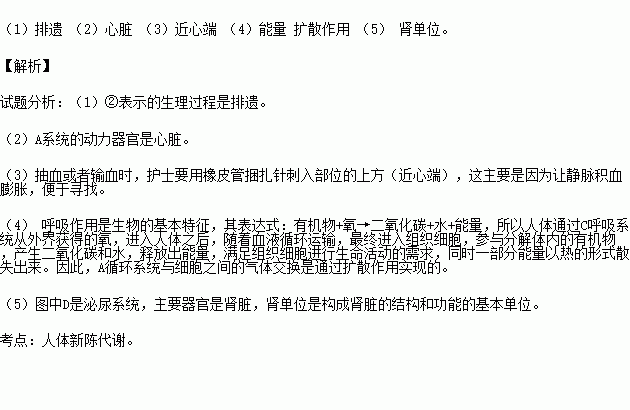 (4)C系统获得的氧气通过A系统输送到组织细胞处利用,从而为细胞的生命活动提供 ,A系统与细胞之间的气体交换是通过 实现的。