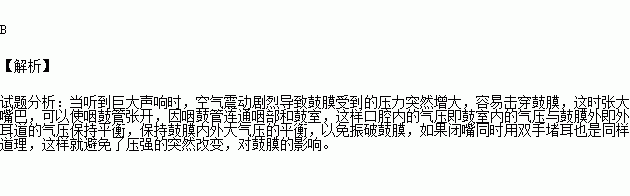 放爆竹和礼花时,若你在一旁观看,最好张开嘴或捂住耳朵、闭上嘴。这种做法主要是为了( )