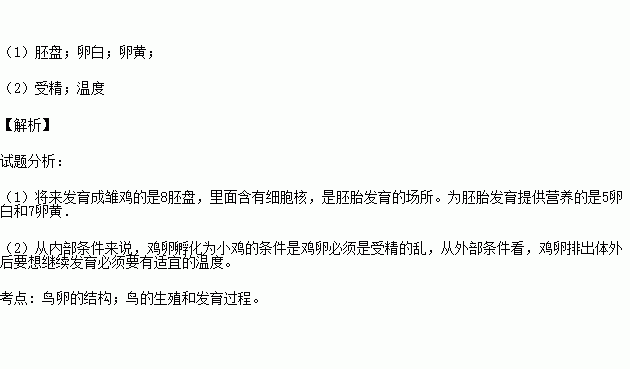 (2)从内部条件来说,鸡卵孵化为小鸡的条件是鸡卵必须已完成________,从外部条件来说,鸡卵孵化所需的适宜条件有适宜的_____、湿度和通风等条件。