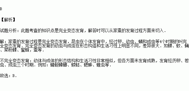 B.家蚕的幼虫和成虫之间有蛹这样的阶段,蛹不吃不喝但身体结构发生着急剧的变化