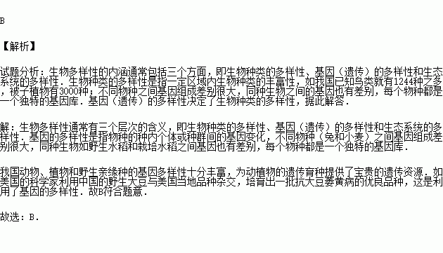 (2015秋•东台市期末)二十世纪七十年代末,美国科学家将我国的野生大豆引进到美国,与当地品种杂交,培育出了抗大豆萎黄病的优良品种,这个事例体现了( )