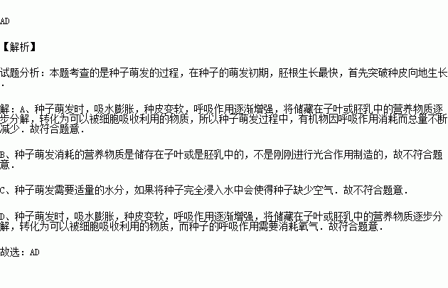 A.种子萌发过程中,有机物因呼吸作用消耗而总量不断减少