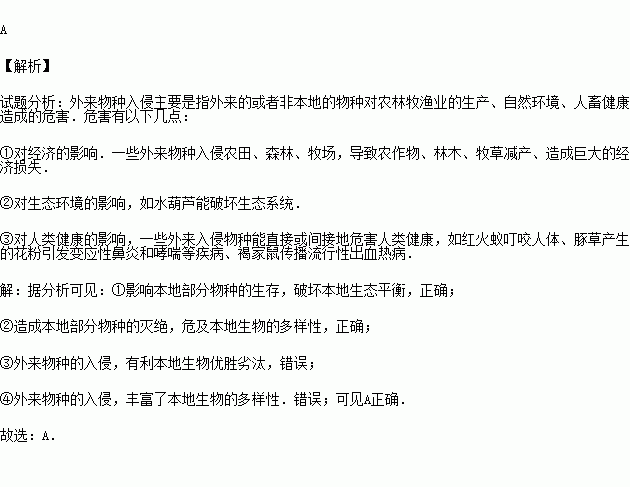 ③外来物种的入侵,有利本地生物优胜劣汰;