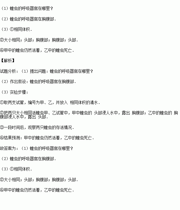 ѧϰÁ˻ȳæºôÎüºó£¬Í¬Ñ§ÃǶԻȳæµÄºôÎü²úÉúÁËŨºñµÄÐËȤ£¬²¢³öÏÖÁËÒâ¼û·ÖÆç£¬ÓÐЩͬѧÈÏΪÆäºôÎüÆ÷¹ÙÔÚÍ·²¿£¬ÓÐЩͬѧÔòÈÏΪÔÚÐØ¸¹²¿£¬¸÷Ê㼺¼û£¬»¥²»ÏàÈã®×îÖÕ¾ö¶¨Í¨¹ý̽¾¿ÊµÑéÀ´½â¾öÕâÒ»ÄÑÌ⣬ÇëÄã°ïÖúËûÃǹ²Í¬Íê³É̽¾¿£®