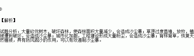 我国是土地沙漠化较严重的国家之一,土地沙漠化造成的城市沙尘暴日益严重。下列行 为不会造成沙尘暴的是