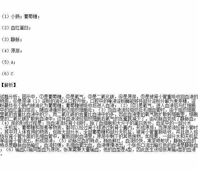 ÏÂͼÊÇСÕÅÌåÄÚµí·ÛµÄÏû»¯ÖÕ²úÎï½øÈëѪҺºÍ×é֯ϸ°ûµÄ¹ý³Ì¼°²¿·ÖÏà¹Ø´úл»î¶¯Ê¾Òâͼ£¨×¢£º¢Ù¡«¢Þ±íʾÎïÖÊ£©¡£Çë¸ù¾Ýͼ»Ø´ð£º