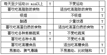 判断下列哪些行为习惯有助于减小患心血管疾病的几率。(画“Y”表示认可)