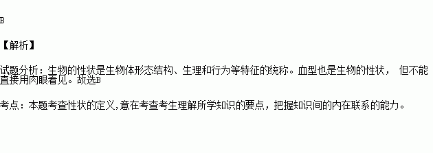 有的人眼睛是单眼皮,有的人是双眼皮;有的人耳朵有耳垂,有的人没有;有的人能把舌由两侧向中央卷曲,有的人不能;有的人能使大拇指向背侧弯曲,有的人不能。上述这些形态结构、生理行为等方面的特性叫做( )