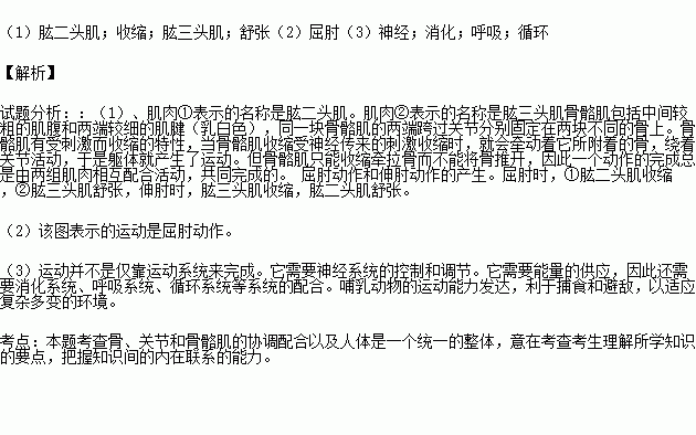 如图是肌肉的协作关系示意图,请根据图分析回答下列问题。(10分)