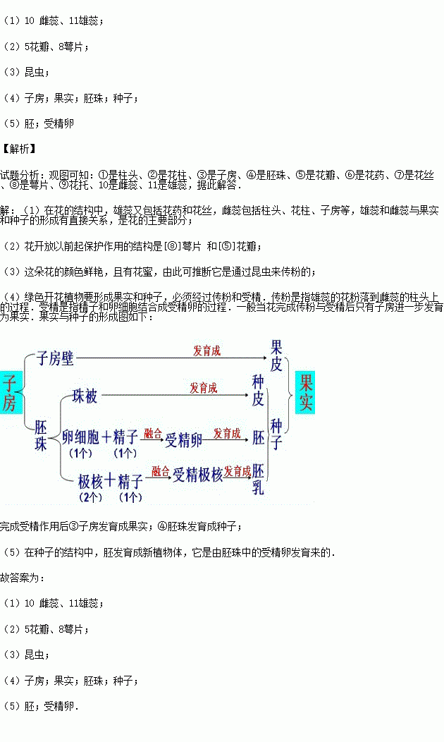 如图是花的基本结构示意图,请据图回答: