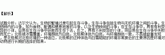 按照达尔文的进化观点,北极熊的体色与白雪皑皑的环境非常接近的主要原因是