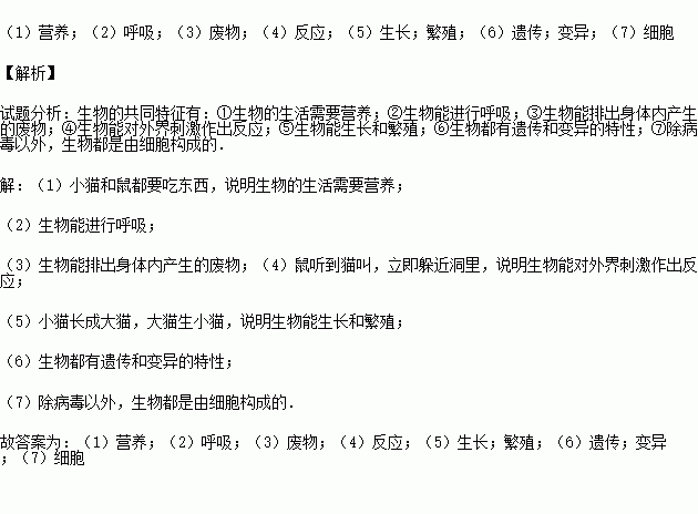 下面是猫和鼠的部分生命现象,请分析说明它们各属于生物的何种基本特征: