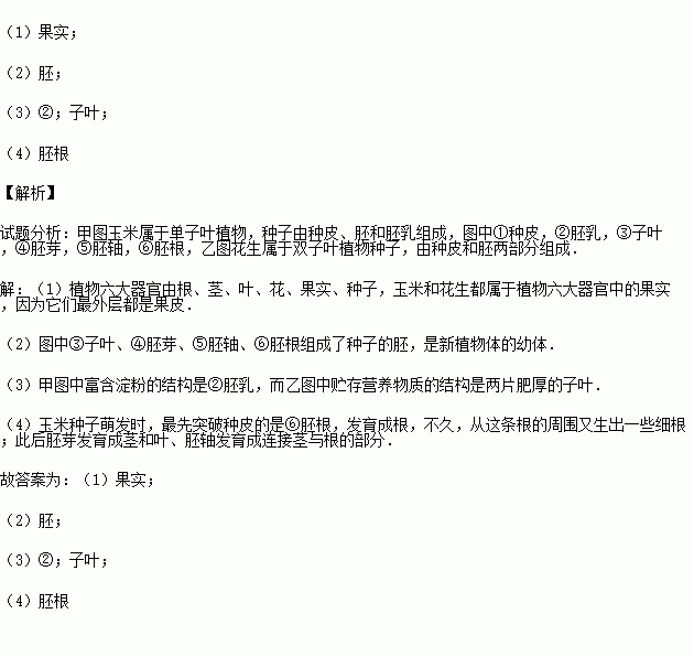 (1)玉米和花生都属于植物六大器官中的 ,因为它们最外层都是果皮.