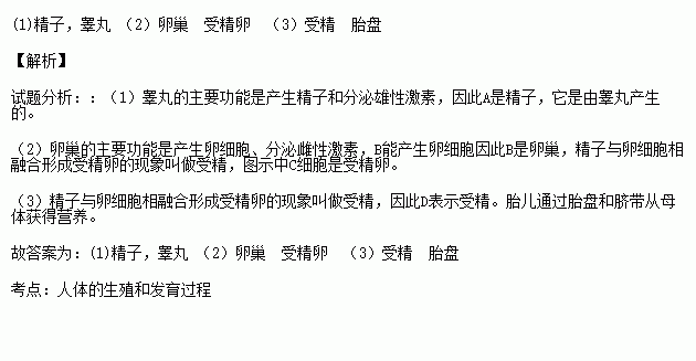 (3)D表示 过程。胎儿通过 和脐带从母体获得营养。