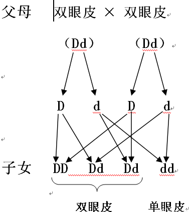 D、小军是双眼皮,dd基因组成是单眼皮,不合题意.