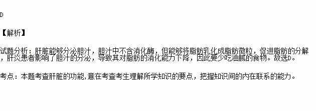 肝炎患者厌食油腻的食物,这是因为肝炎影响了( )